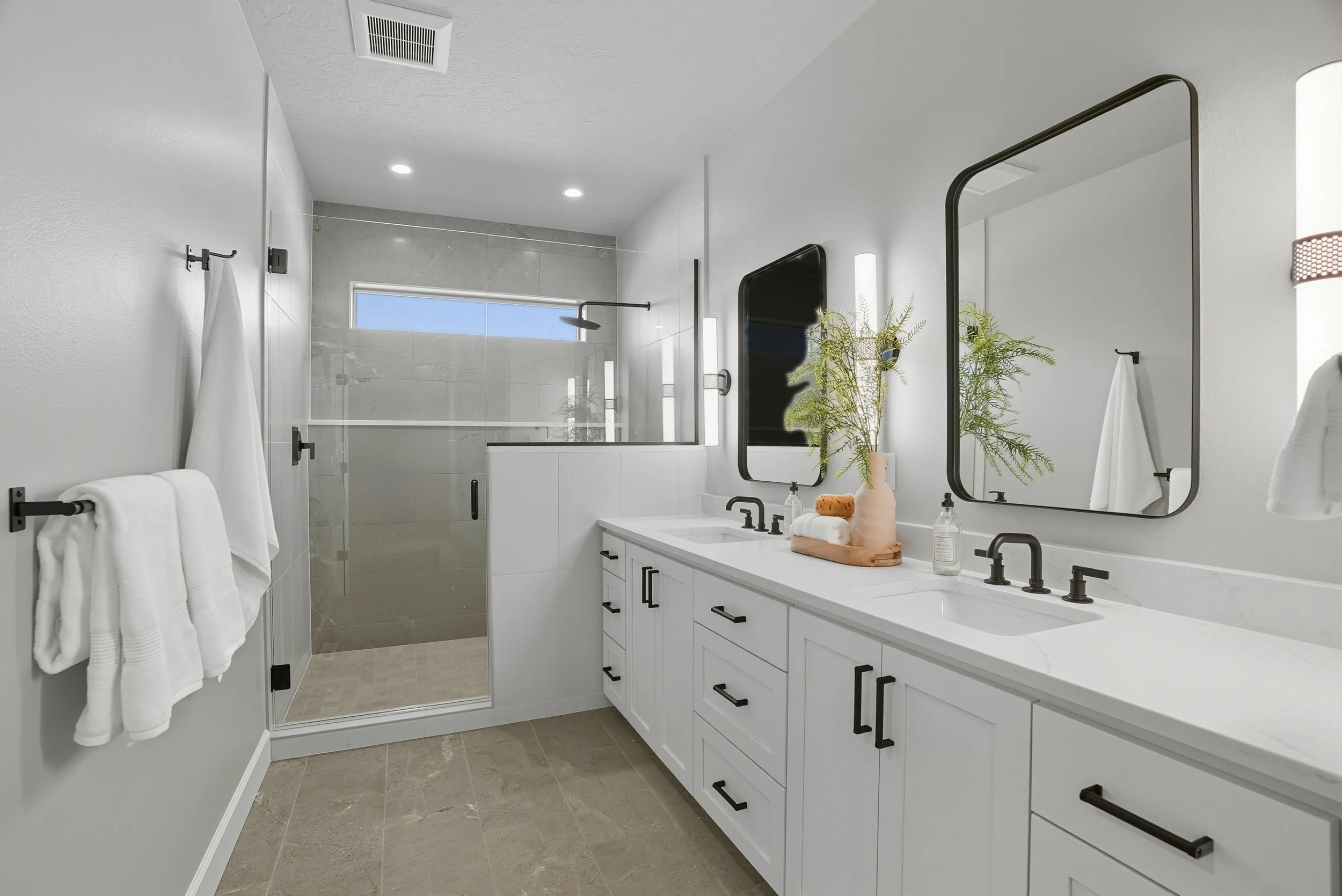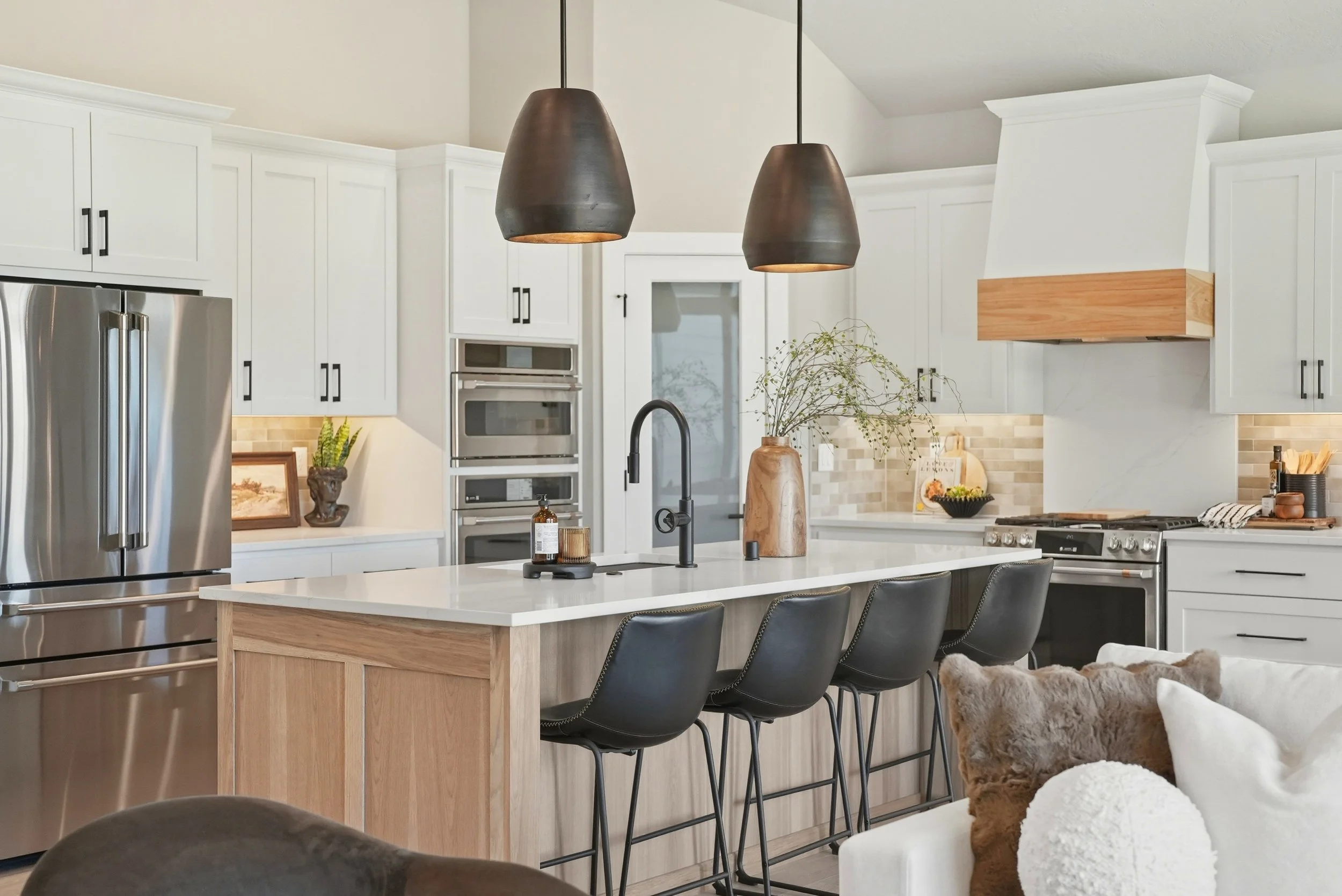 This Fall Festival home for Northwest Custom Homes won the People’s Choice award! We went with our favorite warm modern design and layered in neutrals, plenty of texture, and high end furniture provided by The Tin Roof. For this home, we dialed up the COZY factor. We wanted the home to feel upscale, classy, and the perfect place to throw a cocktail party for 12 OR snuggle in with a good book and enjoy the nature outside your back windows.